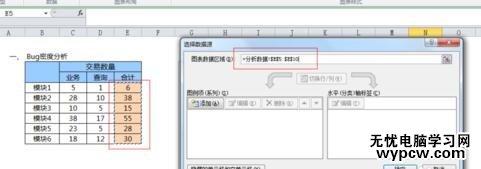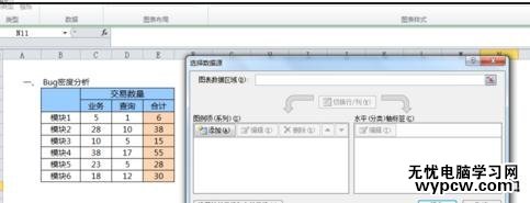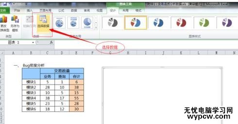 制作餅圖步驟5:在餅圖出來后,在excel上方找到數據選擇按鈕,點開后在彈出來的對話框中的圖表數據區域中,選擇需要顯示的數據區域即可。可以使用shift鍵選擇某一區域內的excel數據。