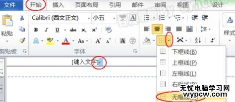 然后我們再選定這個段落符號,并單擊“開始”選項卡下的“邊框”按鈕側邊的小三角形,從彈出選項中選擇“無框線”: