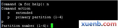 輸入n回車新建分區,接著再輸入p回車新建主分區,如圖