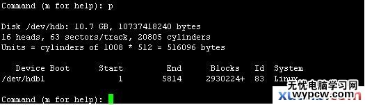 此處可輸入p查看分區是否成功,輸入p回車,如下圖:顯示分區成功