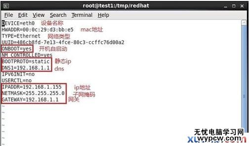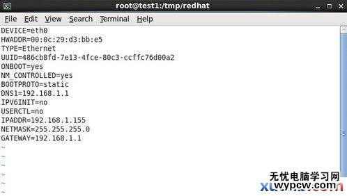 在終端中輸入:vi /etc/sysconfig.network-scripts/ifcfg-eth0