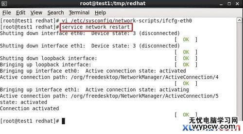 重啟網絡服務。service network restart或/etc/init.d/network restart