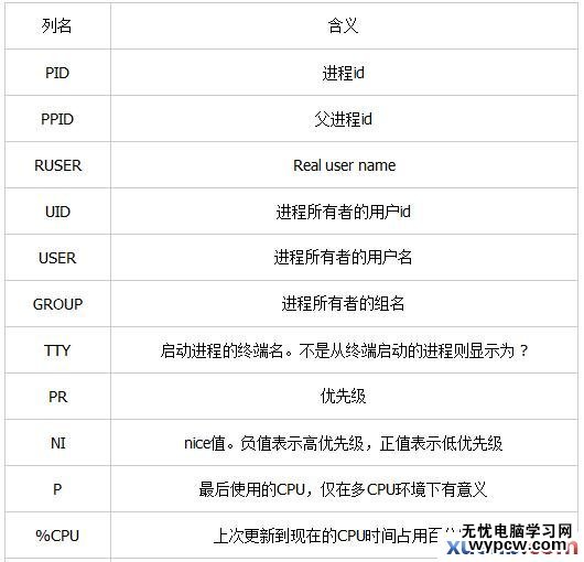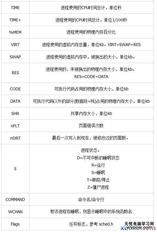默認情況下僅顯示比較重要的 PID、USER、PR、NI、VIRT、RES、SHR、S、%CPU、%MEM、TIME+、COMMAND 列。
