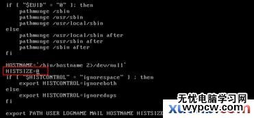 找到HISTSIZE這個值,默認情況下歷史命令將保存1000條,可以將該值改為0,然后保存并退出,最后重啟系統使得配置文件生效。