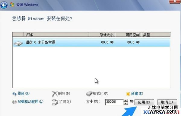 9、然后再選擇未分配空間,繼續設定第二個分區盤的容量,以此類推;