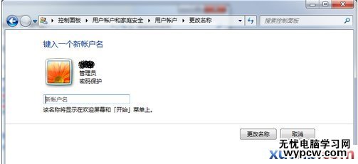 5、在“更改名稱”設置窗口中輸入新的用戶名,點擊“更改名稱”按鈕即可。