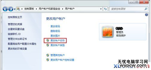 4、在“用戶帳戶”設置窗口中點擊“更改帳戶名稱”選項。