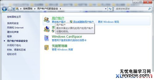 3、在“用戶帳戶和家庭安全”設置窗口中點擊“用戶帳戶”。