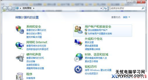 2、在控制面板中點擊“用戶帳戶和家庭安全”。