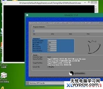 6、解壓完成重啟計(jì)算機(jī),拔出U盤,自動(dòng)執(zhí)行系統(tǒng)安裝和配置操作;