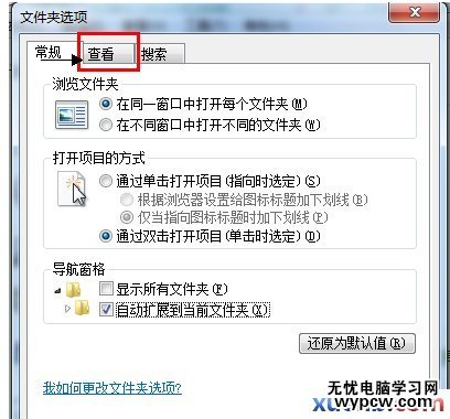 3、文件夾選項打開后,將菜單跳轉(zhuǎn)至“查看”。