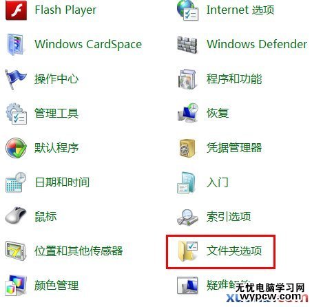 2、然后在控制面板的選項中選擇“文件夾選項”,進一步設置計算機文件的查看方式。