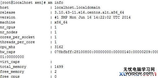 第六:xen安裝完成,執(zhí)行xm info 查看相關(guān)信息。