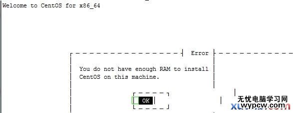 安裝過程中提示內(nèi)存不足:You do nothave enough RAM to install ││ CentOS on this machine.