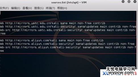 deb http://mirrors.ustc.edu.cn/kali sana main non-free contrib