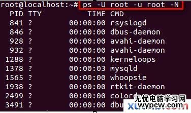 在控制臺使用ps命令“ps -U root -u root -N”,查看當前系統中非root運行的所有進程。