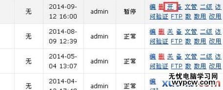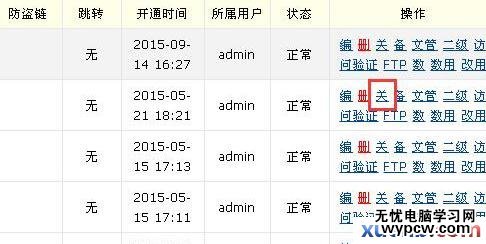 4、點擊【關】會出現關閉提示,點擊確定即可。這樣就關閉了自己的網站,這個時候你也會發現關閉的網站的操作項變成了【開】,