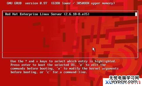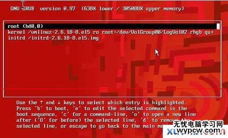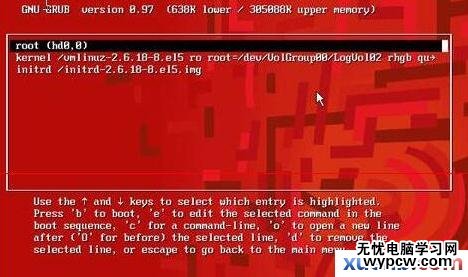 3、按完上一次“e”鍵后我們來(lái)到了下面這個(gè)界面,如果出現(xiàn)的和本圖不一樣,就找到有kerner字樣的那一行,然后再次按下“e”鍵;