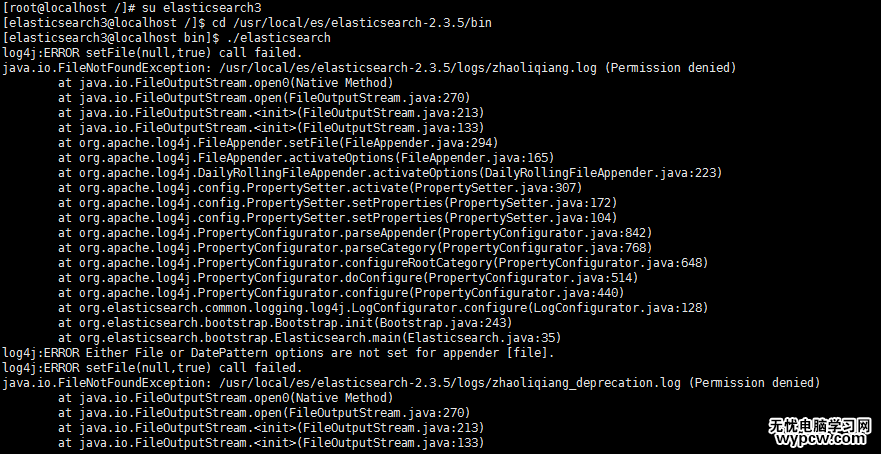 用戶名和用戶組都已創建好,也把用戶添加到用戶組里面了。下面我們就來用這個專門管理elasticsearch的用戶啟動一下服務,結果又報了如下的錯誤: