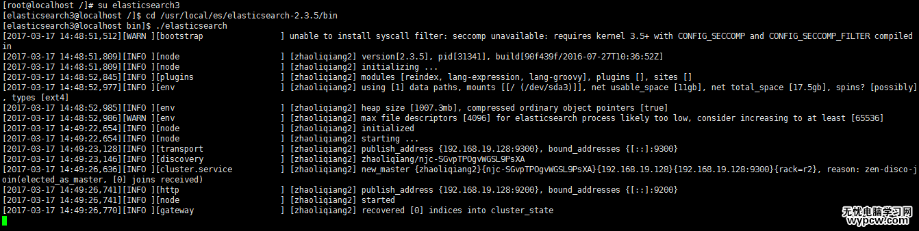 passwd elasticsearch3——->設置用戶密碼為elasticsearch3