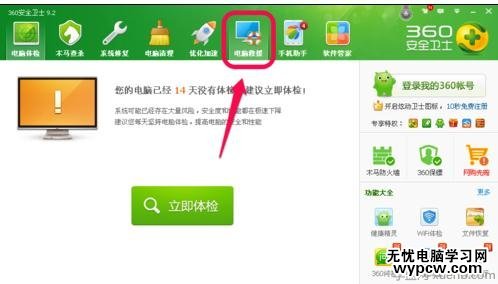 首先,打開360安全助手,點擊上方的導航:電腦救援,如圖。