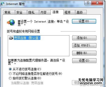 選擇internet選項后,就可進入到Internet屬性,點擊“鏈接”——“添加”