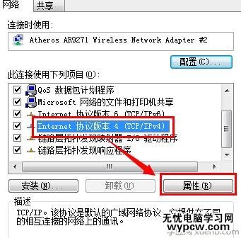 然后選中“TCP/IP”項,點擊“屬性”按鈕。