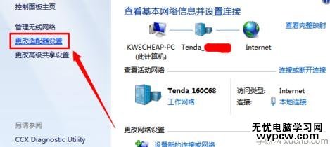 在打開的窗口中,點擊“更改適配器設置”按鈕。