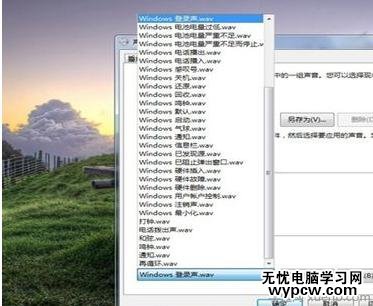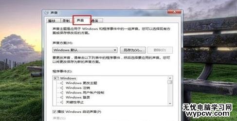 如果沒有系統開機聲音,那么可以選擇左邊聲音菜單選擇系統開機聲音。