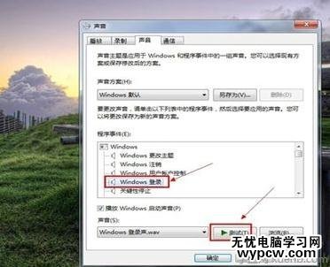 到這里,我們點擊windows登錄,然后選擇下面的【測試】,看看有沒有系統看機的聲音。