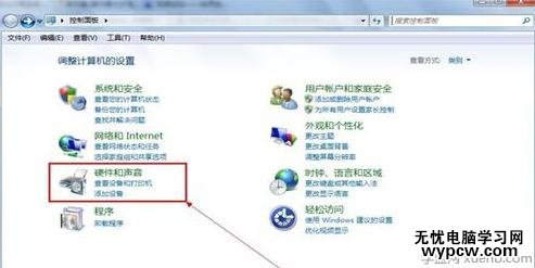 在控制面板中,找到【硬件和聲音】,點擊進去。
