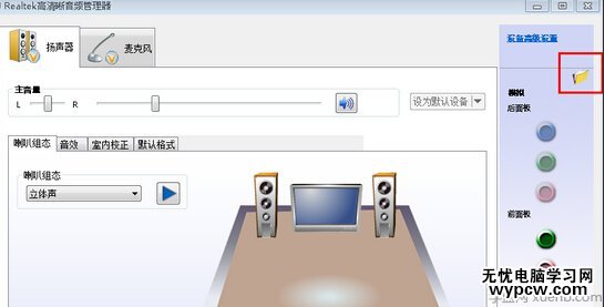 2、在打開的控制面板中,找到并雙擊打開“Realtek高清晰音頻管理器”,然后點擊右上角的“插孔設(shè)置”文件夾;