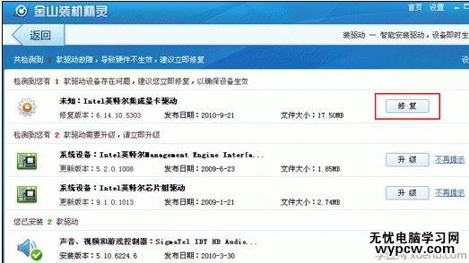 1.使用金山衛士3.0為您更新顯卡驅動。打開金山衛士3.0,進入“裝機精靈標簽” — 點擊按鈕“裝驅動”