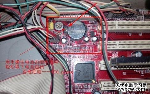 在主板上有一個很小的電池,把他取下來。在電池的一側(cè)有一個小擋板,將其向外輕輕一撥即可取下電池,不要使勁亂摳啊。