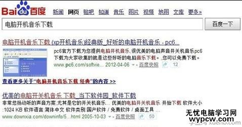 百度搜索【電腦開機音樂下載】,然后選擇網站下載聲音壓縮包。
