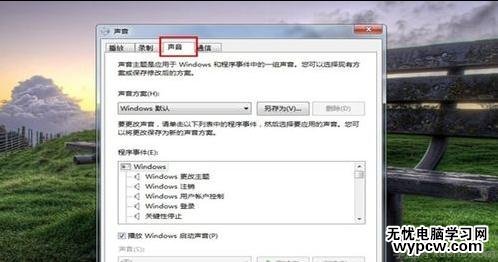 如果沒有系統開機聲音,那么可以選擇左邊聲音菜單選擇系統開機聲音。