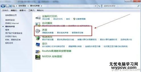 在硬件和聲音里,我們選擇【聲音】。