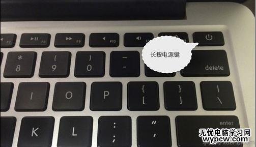 當遇到此類故障時,請長按 Mac 電腦的電源鍵保持在5秒左右,然后再開機。一般情況下,如果是由于系統問題不能重新開機的,這樣操作可以解決問題的。
