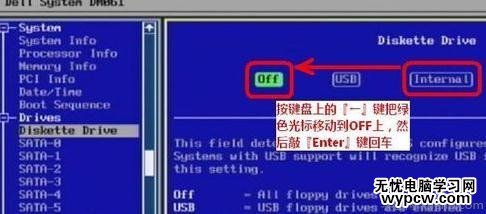 再按鍵盤上的『←』鍵選擇『OFF』后,敲鍵盤上的『Enter』鍵回車確認。
