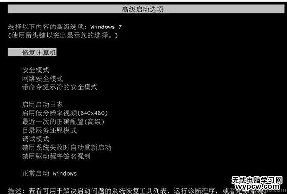 開機按F8不動到高級選項出現在松手,選“最近一次的正確配置”回車修復,還不行按F8進入安全模式還原一下系統或重裝系統。
