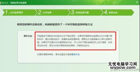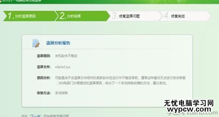 最后將生成解決方案,根據(jù)窗口中的提示進行相關(guān)操作,來修復(fù)電腦藍屏故障。