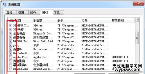 切換至“啟動(dòng)”選項(xiàng)卡,然后禁用部分隨系統(tǒng)啟動(dòng)程序或全部,最后點(diǎn)擊“確定”按鈕重啟電腦。