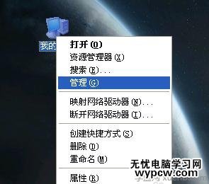 右擊“我的電腦”,在彈出的菜單中選擇“管理”項。