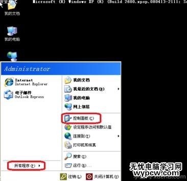 5、單擊(開始)-(所有程序)-(控制面板)。