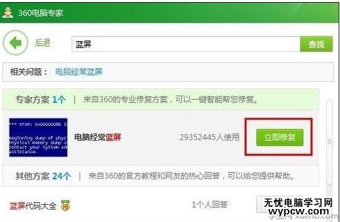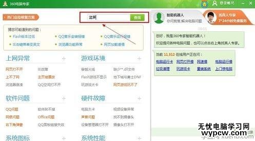 2,打開了電腦診所之后,點擊右上角的搜索窗口,然后在里面搜索【藍屏死機】,然后根據提示逐步進行操作,就可以幫你順利解決問題了。