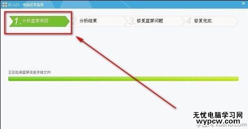 進(jìn)入藍(lán)屏檢測(cè)過程,首先軟件會(huì)分析藍(lán)屏原因,分析完成后點(diǎn)擊【下一步】。