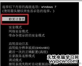 1,藍屏后重新啟動按住F8,進入操作選項,選擇“修復計算機”