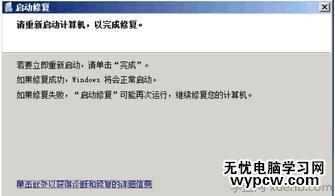 4,點擊完成,系統修復完成重啟正常。一般性的比如非法關機導致的問題都可以解決