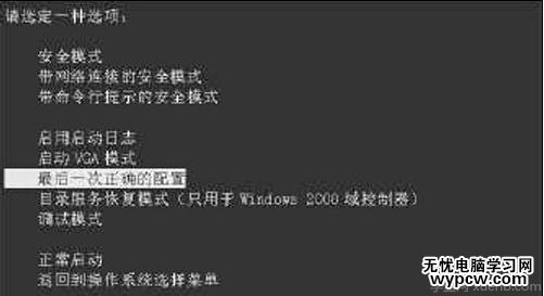 方法2、當(dāng)電腦首次出現(xiàn)藍(lán)屏?xí)r,應(yīng)當(dāng)在重啟電腦時(shí),按鍵盤快捷鍵“F8”進(jìn)入系統(tǒng)啟動(dòng)菜單中,然后選擇“最后一次正確的配置”來啟動(dòng)電腦,據(jù)此來修復(fù)一下電腦,看問題能否得到有效解決。