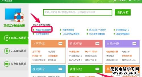 在360電腦救援頁(yè)面,你可以看到“電腦經(jīng)常出現(xiàn)藍(lán)屏”的常見(jiàn)問(wèn)題,點(diǎn)擊。